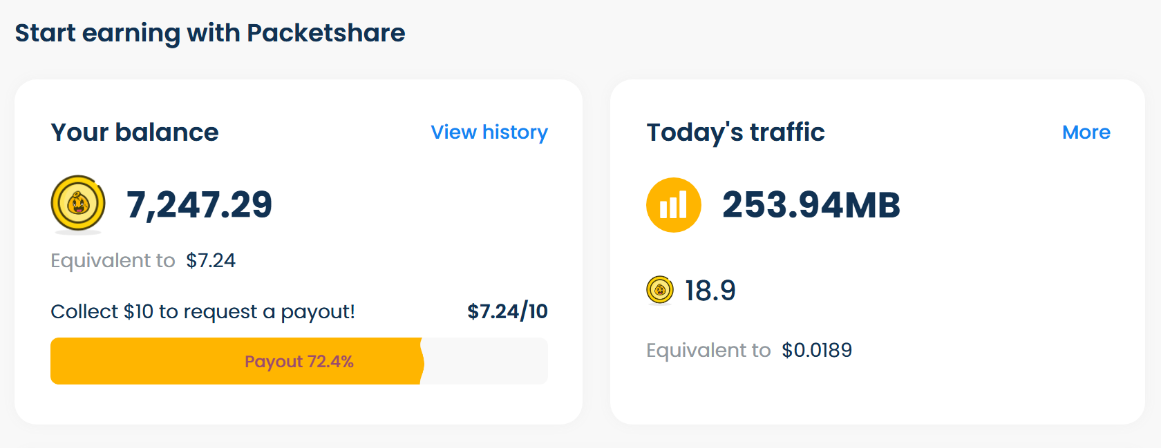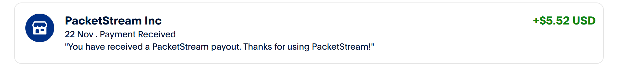 Packetstream 收益降低了,这两周只出了一次 5$,还有3$余额。