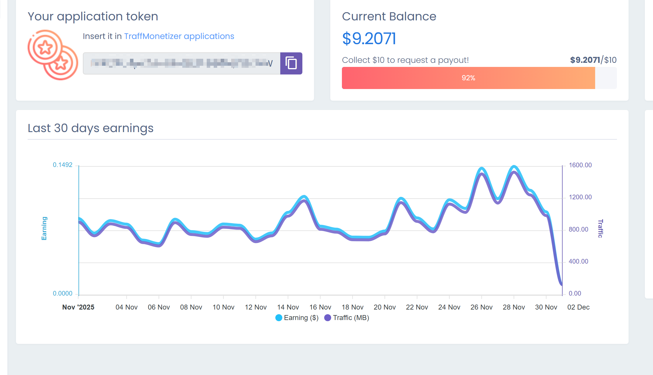 traffmonetizer9.2 刀,有上升趋势?